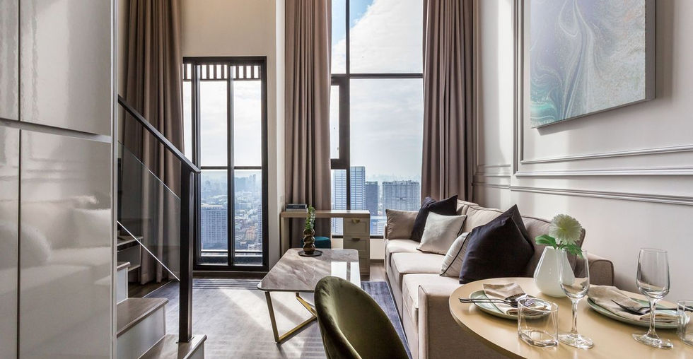 ห้อง Duplex ชั้น 32: 1 ห้องนอน, 1 ห้องน้ำ พร้อมฝ้าเพดานสูง 4.2 ม. สร้างความโปร่งโล่งและเป็นส่วนตัว